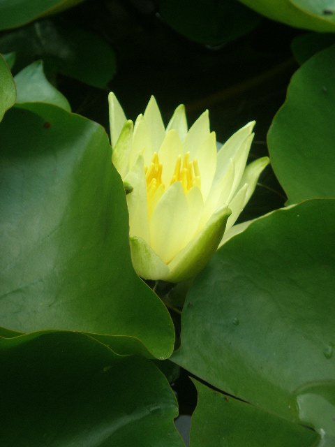 Листья град сильно побил, но несмотря на это нимфеи цветут.