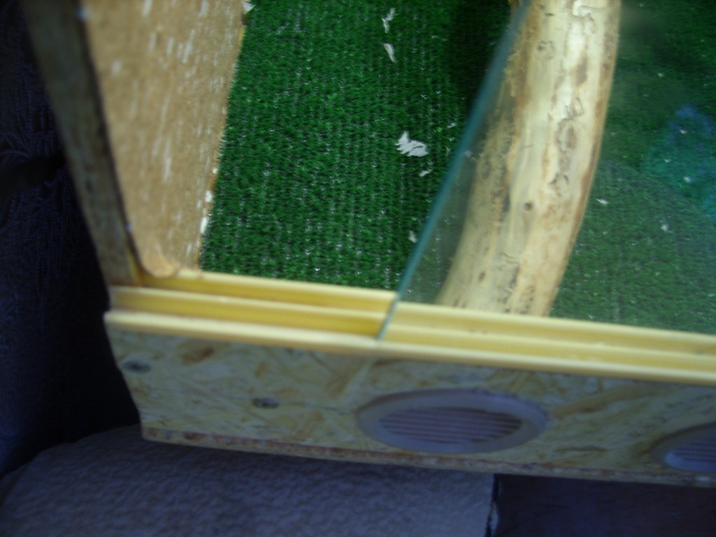 Вентиляция изнутри обклеена сеткой (посадил на силикон) для того, чтоб кормовые насекомые не убегали.