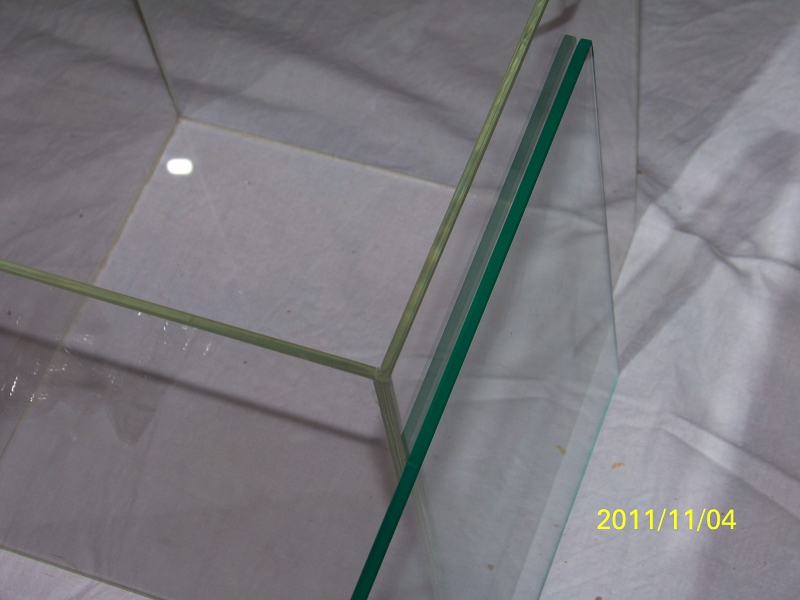 Я заказывал в Акватике 2 аквариума из ультра прозрачного стекла. Первый аквариум заказал в октябре 2011 года. Аквариум размерами 25*25*30, стекло 4 мм. Аквариум сделали быстро и очень качественно. Прозрачность стекла была просто обалденная. Так получилось, что я попросил в Акватике сделать и покровное стекло на всякий случай, его сделали из обычного флоат-стекла с полировкой, за что им огромное спасибо. Вот фотография, которая очень наглядно показывает разницу между обычным и ультрапрозрачным стеклом.