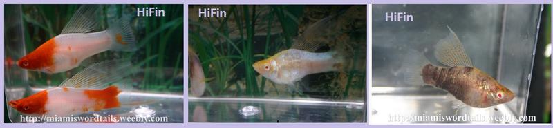 Возникает много вопросов - что такое флаг и какие бывают формы спинного плавника у меченосцев и пецилий . По форме плавников меченосцы делятся на пять стандартов , из которых два - это по хвостовому плавнику , и три по дорсальному или спинному . Различают три формы спинного плавника Обычный , HiFin , SailFin . См. посты 6,8 этой темы . http://www.aquaforum.ua/showpost.php...98&postcount=6 , http://www.aquaforum.ua/showpost.php...44&postcount=8 . HiFin - в переводе "привет плавник" , так назвала мадам Тельма Симпсон мутацию , которую ей удалось закрепить в далеких 60-х. Зта аллель доминантна - проявляется в первом поколении у 50% помета. /См.фото 1/. Селекционеры называют это - фактор Симпсон. И так , в переводе HiFin - привет плавник , SailFin - парусный плавник /см.фото 2/ . Более наглядно видно на фото 3 - HiFin , на фото 4 - SailFin .