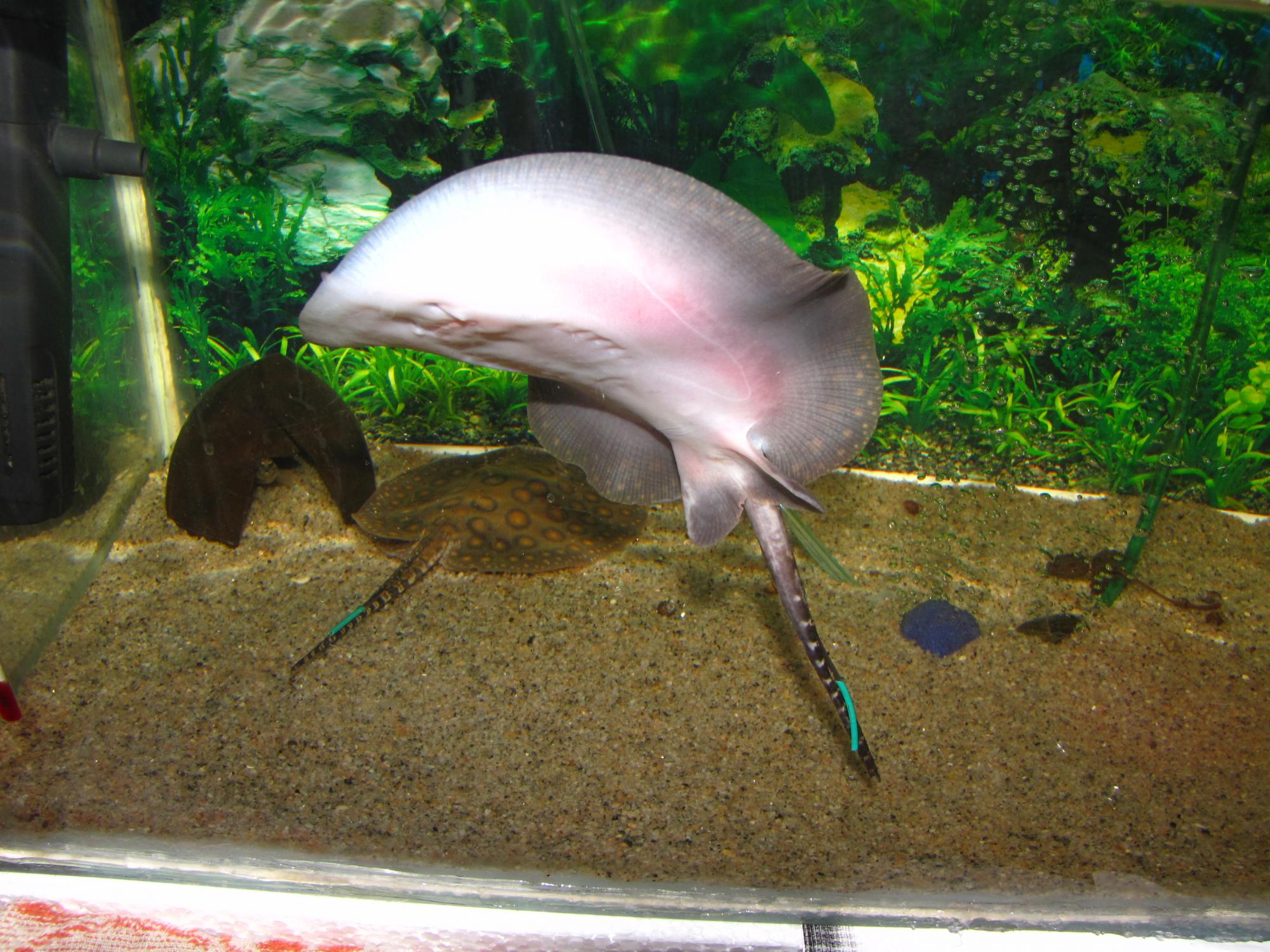 кстати сначала когда освобождала акву под скатов пока засыхал силикон на той что потекла, то мне было некуда пристроить одного приболевшего йодотрофеуса, ну я взяла и кинула его к скатам, подумав ну что там может случится или сдохнет совсем или подлечится вместе с ними... но эта неблагодарная свинка сразу же только попала в акву подплыла к хвосту ската и видимо собиралась его цапнуть, я тут же сачек обратно и йодика вон из аквы.. хотя до этого йодик сидел с дельфином который 2 см размером и дельфин его гонял. Вот так вот..