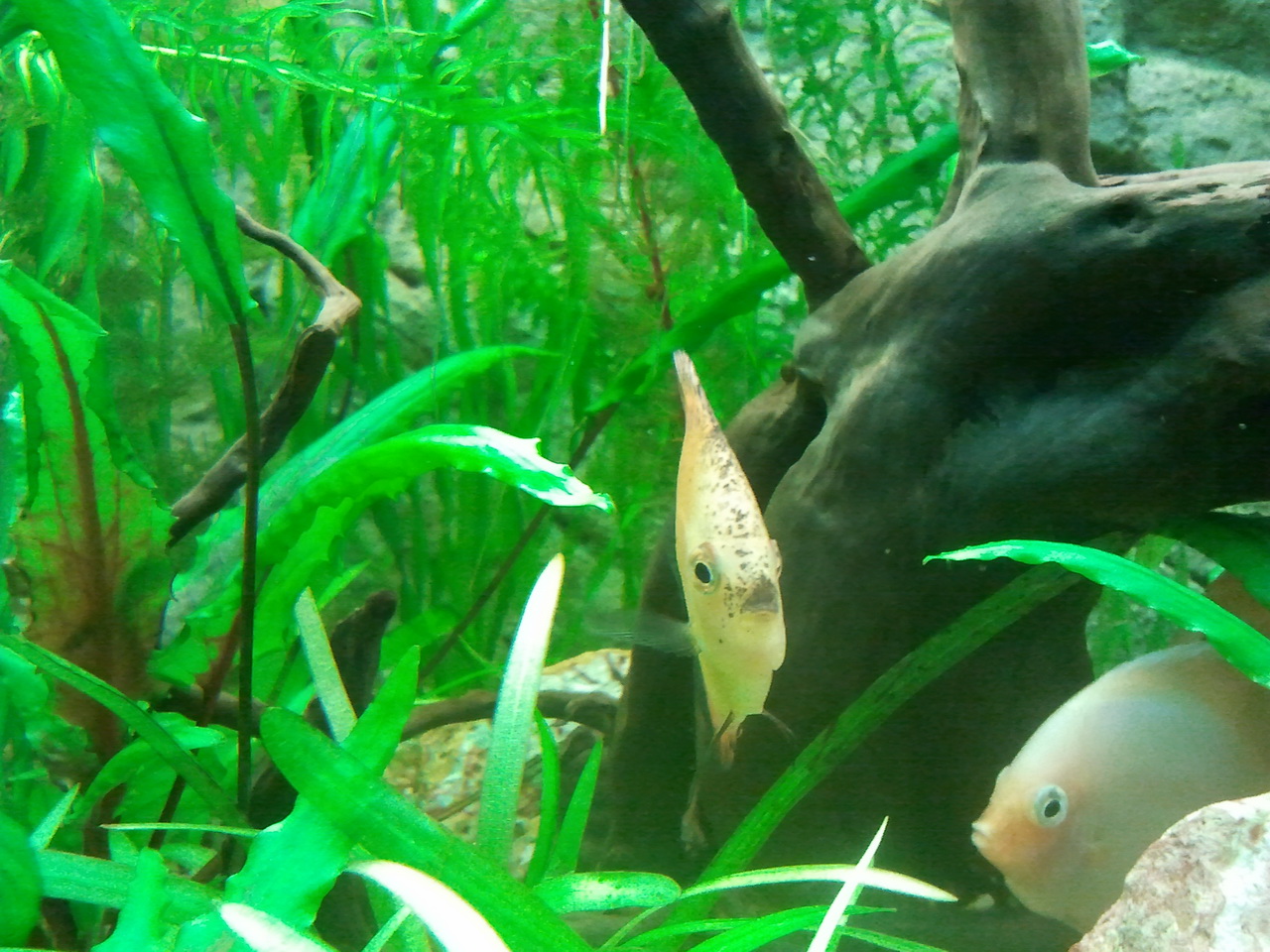 Здравствуйте, уважаемые дискусоводы.Прошу совета, т.к. я пока начинающий, посему сам боюсь натворить делов, ибо инфы в нете слишком много,в основном противоречивой,касающейся моего вопроса.Имеется 9 дисков размерами от 4 до 7 см, живут у меня около месяца.Сразу при покупке не заметил, потом пригляделся-у одного из них изначально были увеличены глаза( были и большего размера, чем у остальных, и более "навыкате"). Не обращал на это внимание, ну, думал попался "глазастик".Он довольно активный, всегда нормально принимает пищу(сейчас в основном заморозка артемии и начал кормить мидией).В последнее время мне показалось, что пучеглазие прогрессирует (или только показалось?),и не обратил бы внимание, если бы не тот факт, что сегодня другой однозначно не глазастый изначально диск выпучил один глаз(( и неохотно принимает пищу,все едят, а он чуть клюнул и отплывает, а все остальные вместе с ним со вчерашнего дня стали очень пугливы, даже при кормежке может быть несколько раз такое: ни с того не с сего кидаются в рассыпную, а корм тихо падает на дно...потом все же подбирают,но раньше так не шугались.Начитался про туберкулез и водянку, крыша едет-как правильно лечить, и нужно ли.Единственно что, пока не делал тестов воды-может ли это быть причиной повышенного аммиака или чего-либо еще.Аква 350л,грунт+растения(не так много), внутр. фильтр Juwel с биосубстратом, аэрация, подмена 35% раз в неделю,температура 29-32 град