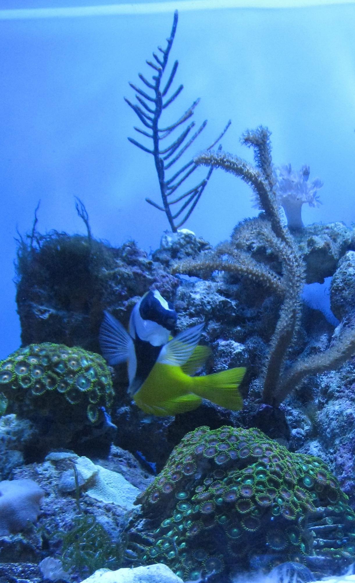 ).Лисица сразу поела почти всех губок Sycon (которые уже порядком надоели,даже в зонтиках ростут),потом пощипала хетаморфы и каулерпы,в некоторых местах пятнами прополола нитку и вплотную занялась большим кустом ботриокладии.По совету Алексея(Шерхан),ботриокладию убрал из меню "газонокосилки" и она с яростью принялась выдергивать хорошие куски нитчатки из камней,не брезгует заморозкой(какает правда тоже неплохо