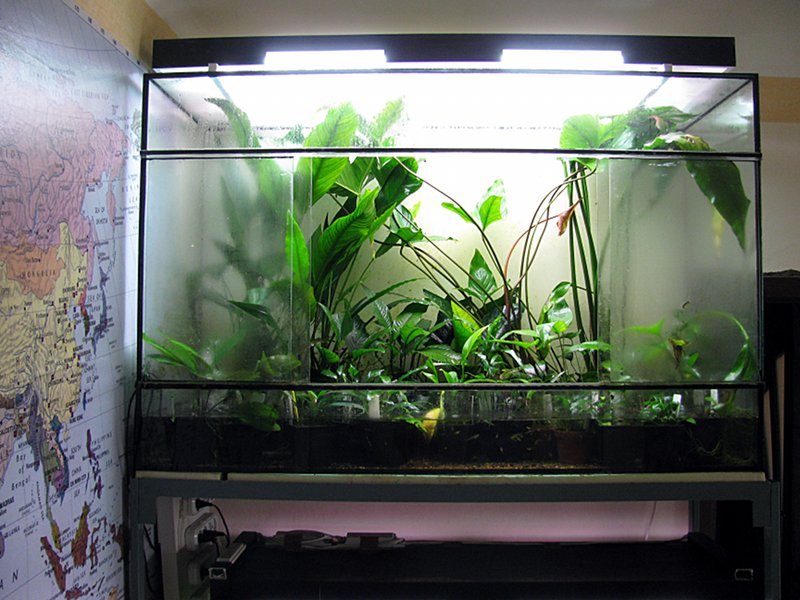 Забавно, когда строил думал — вот теперь мне на долго хватит места под растения, а как раставил все анубиасы да лагенандры так чтоб им хоть чуток свободы было и понял — а место то и кончилось  Так что я снова в поиске идеи где бы еще пару теплиц пристроить... но жене пока говорить боюсь