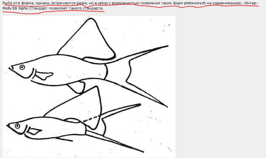 Я думаю что отвечу сразу на ваши два поста этот и следующий. У кого не получаются у Вас ? У меня получаются. И самцы и самки. Рыбу разводят согласно стандартам /см.фото 1,2,3/. Если есть стандарты - есть соответственно рыба. Любители разводят и выставляют на конкурсах и выставках/в цивилизованных странах/. По вопросу " Куда подевался ген Нн" - он либо есть- признак доминантный/Нн/ проявляется в фенотипе , либо его /нн/ нет - обычные плавники. Я уже говорил об этом недавно в вашей теме пост № 6 /фото 4/. Если Вас сбивает с толку количество информации - в частности моя переписка с ВВС /см. фото 5/ , то думаю не стоит заморачиваться. Главное отбор и подбор пар. Большинство занимаясь разведением запускают штук 15-20 мечей , и кто кого взгреб - тот того и имеет. Если присмотреться к выросшему помету, то форма тела , форма/количество лучей. длинна , ширина , высота и др./ плавников у даже гомозиготных однопометников разная. А что говорят американцы я уже неоднократно писал. Вот в часности несколько цитат/см.фото 6,7/. Несколько спешу и задержался - сегодня рыбу отправляю.