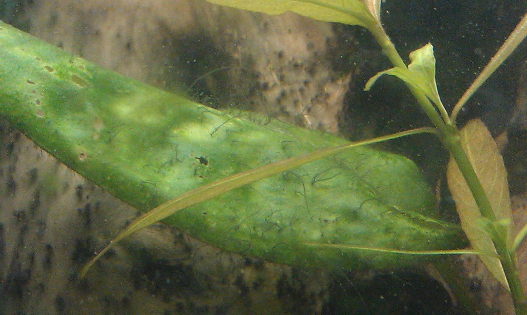 Добрый день ! Поделитесь опытом как вы боритесь с водораслями, у меня на некоторых появились вот такие , причем на одном виде растений листики чистые , а на других в бороде ))