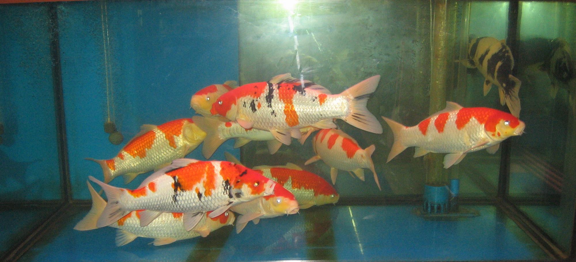 Кои не аквариумная рыбка и сверху намного красивее.