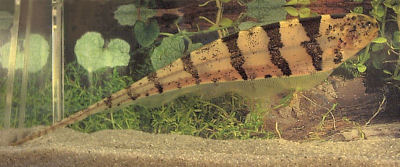 Steatogenys ocellatus. Американский нож ,максимальный размер этого ножа не превышает 40см . Возится очень редко . весь мой опыт по этой рыбе ограничен (заказывал один раз , пришел дохлый , больше не попадал на предложение купить ). Может у кого есть более удачный опыт , поделитесь .