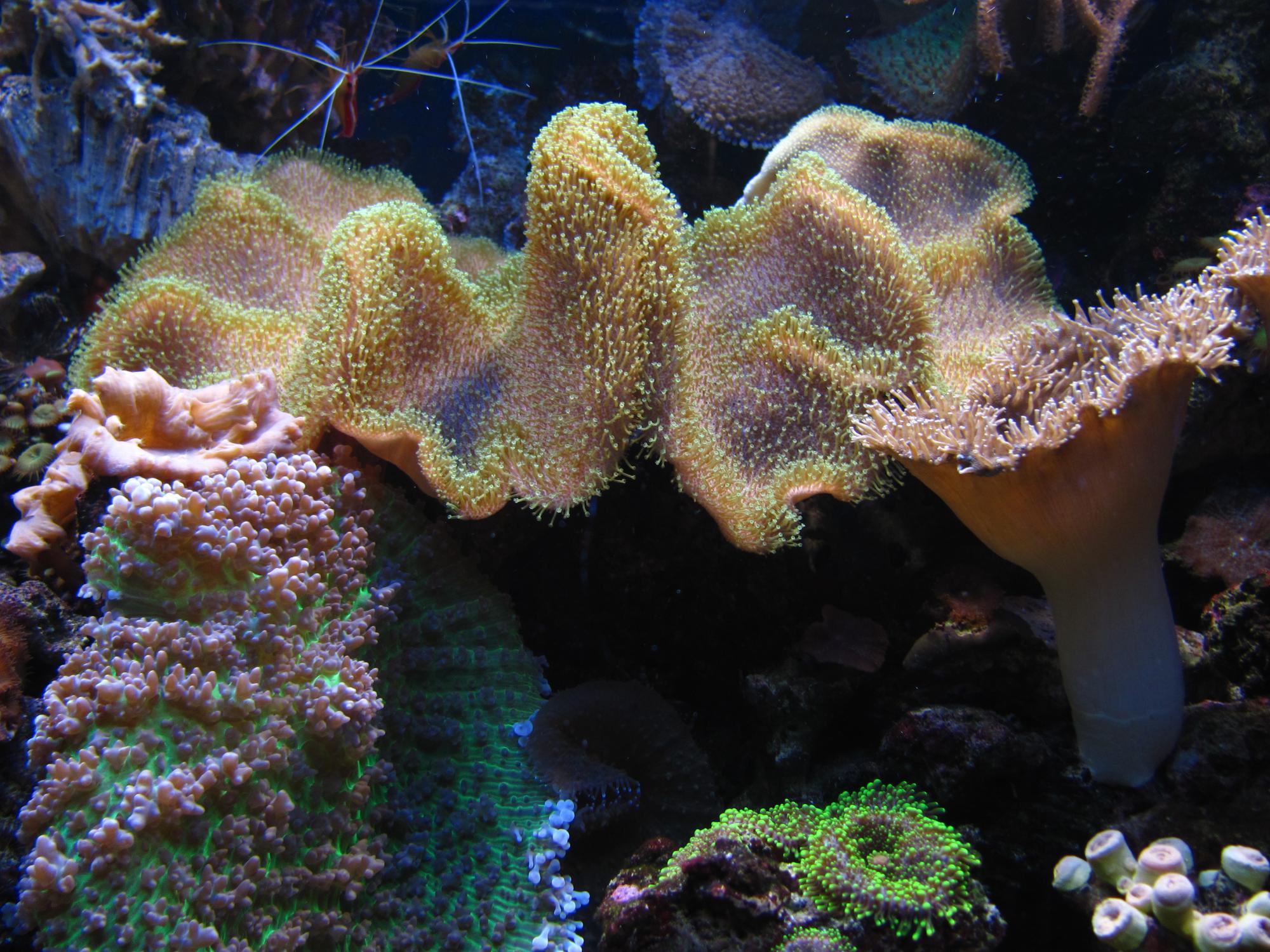 В аквариуме живут как мягкие так и твердые кораллы,из них 2 вида СПС.