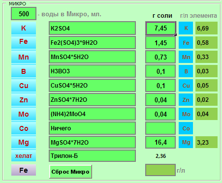 Все верно. Я его на Brexil Fe делал, проблем не возникало. Вчера просто опробовал калькулятор и трилон растворился не полностью. Вот и закрались сомнения. А вообще я еще добавляю Кобальт, Ванадий и Йод KI.