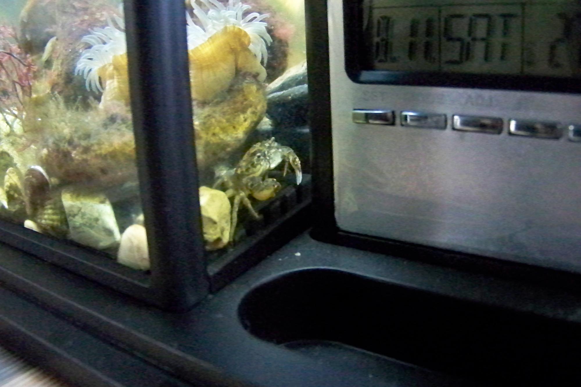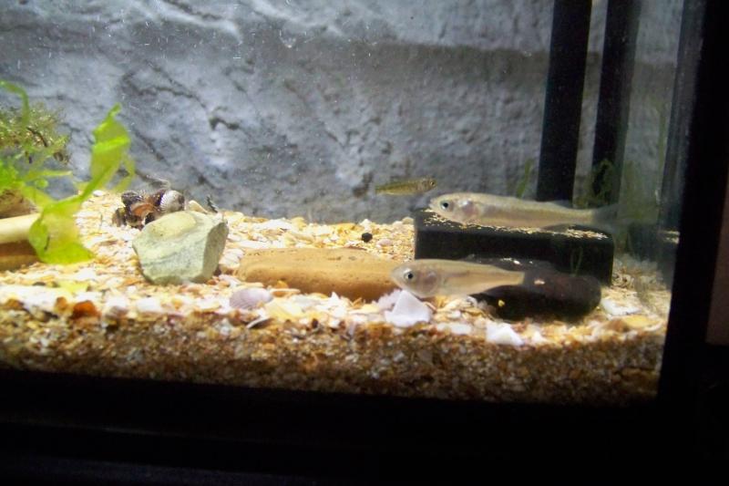 В акварум добавлены краб и креветка палемон. Краб сразу занялся переустройством дна, создавая себе укрытия. Палемон исследует расщелины между камушками, просовывая туда миниатюрные клешни. Фотографировать их трудно: и краб, и креветка прекрасно видят за пределы акваруима, при попытке приблизиться к аквариуму, краб прячется, а палемон поворачивается "к неприятелю лицом" и угрожающе щёлкает клешнями.