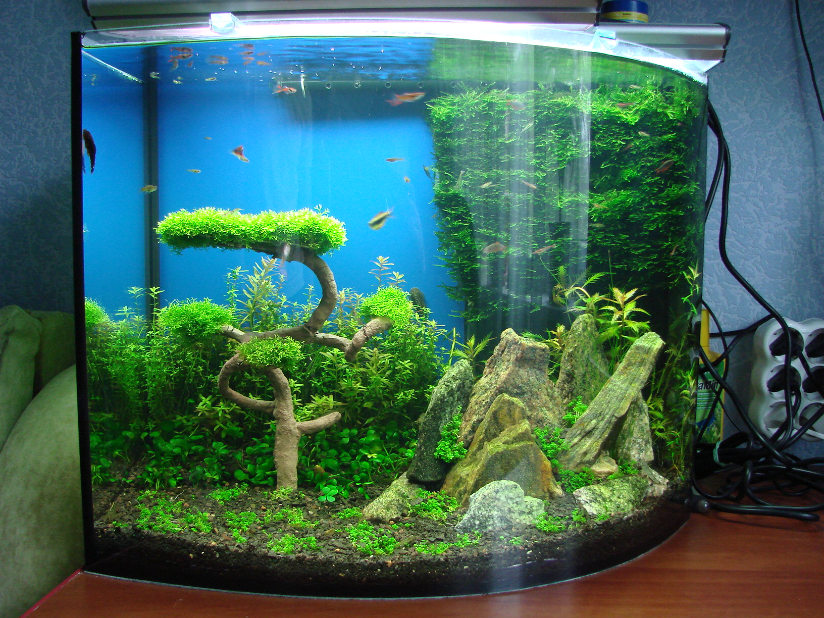 В спальне такой вариант многим будет неприемлем. Я оставляю выброс воды из фильтра на уровне воды в аквариуме - тогда нет журчания воды... Если приподнять фильтр как я написал выше и поставить кулеры на маленькие обороты - скажем на 1000об/мин и ещё включить их на минимально возможное напряжение, то это будет совершенно тихо и достаточно эффективно.