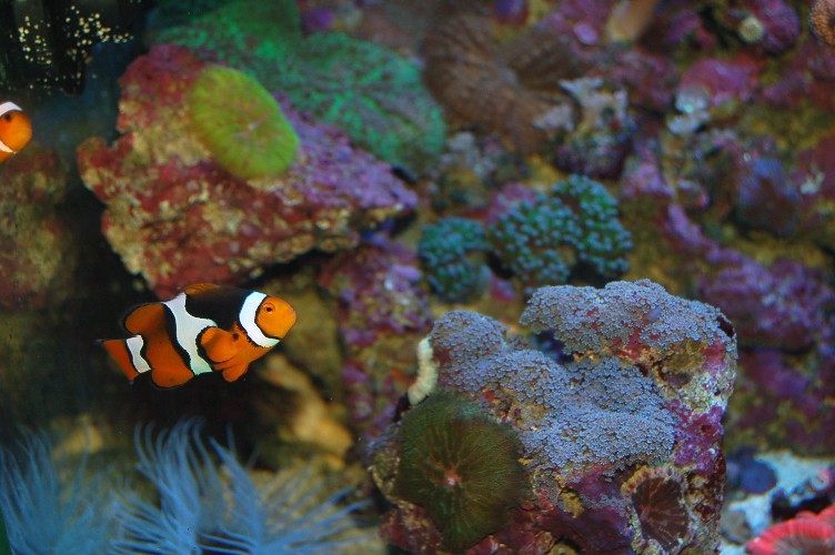 Из рыбы сейчас только пара оцеллярисов, большой камень с актинией нездешний, пришлось поставить недавно в связи с перезапуском другого аквариума, отобрал у кларки. Оцеллярисы же эти совершенно не интересуются ни актиниями, ни сарками или эуфиллиями, чистят регулярно круглый булыжник, который им поставил, но пока не метали.