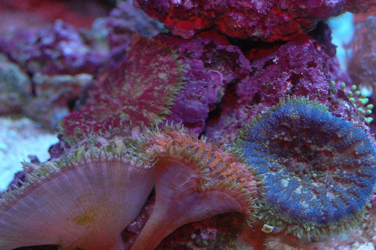 Та, что бежевая -у меня самый быстрорастущий коралл, наверно, после синей корнулярии, остальные виды чувствуют себя в основном нормально, но рост очень медленный. Вообще их очень люблю, лучше всех прочих создают иллюзию глубины в океане, ИМХО.