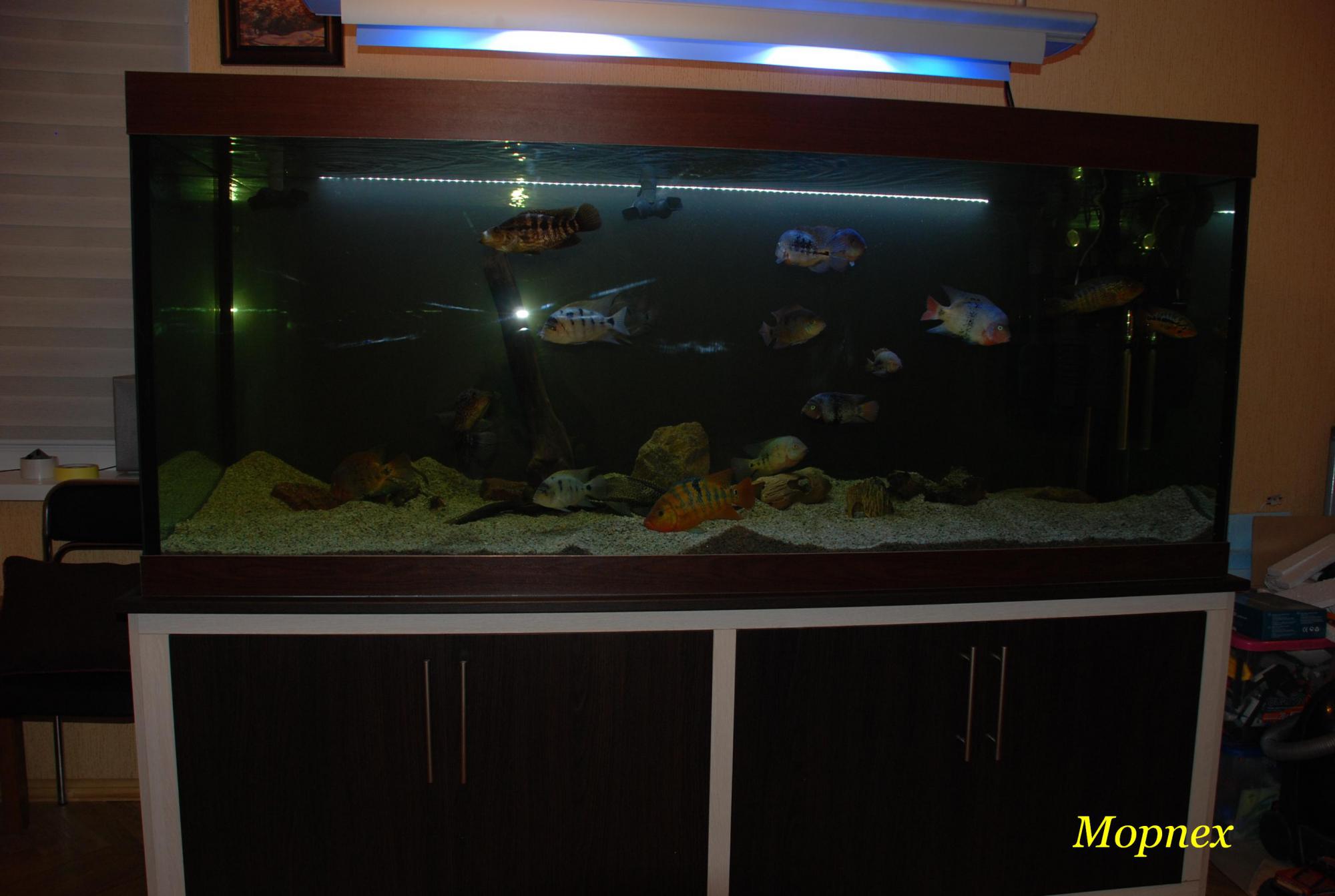Аквариум изготавливался на дому. Процесс был не простой, но итогом я доволен. В конечной стадии изготовления, я все же отказался от сампа и фильтрацию сейчас осуществляют два ФХ-5 и помпа с мочалкой на 2800л/час. В перспективе хочу добавит еще один внешник исключительно под биологическую фильтрацию.