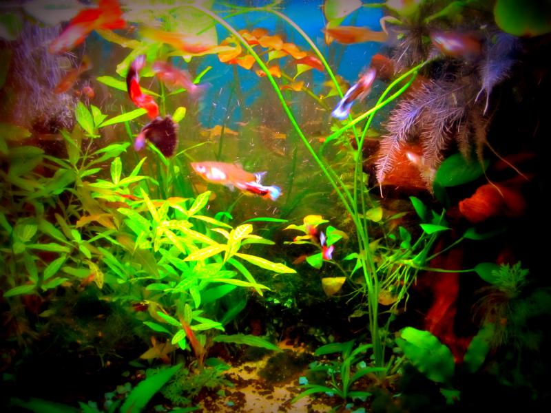 Гупи-просто симпатяги, но готовь себя к получению разных цветов (мальки приобретают новые необычные цвета...): типа синие испанцы или получерные эндлеры ( типа таких: мама золотой Эндлер, папа  , в аквасе нет ни одного красного гуппи)