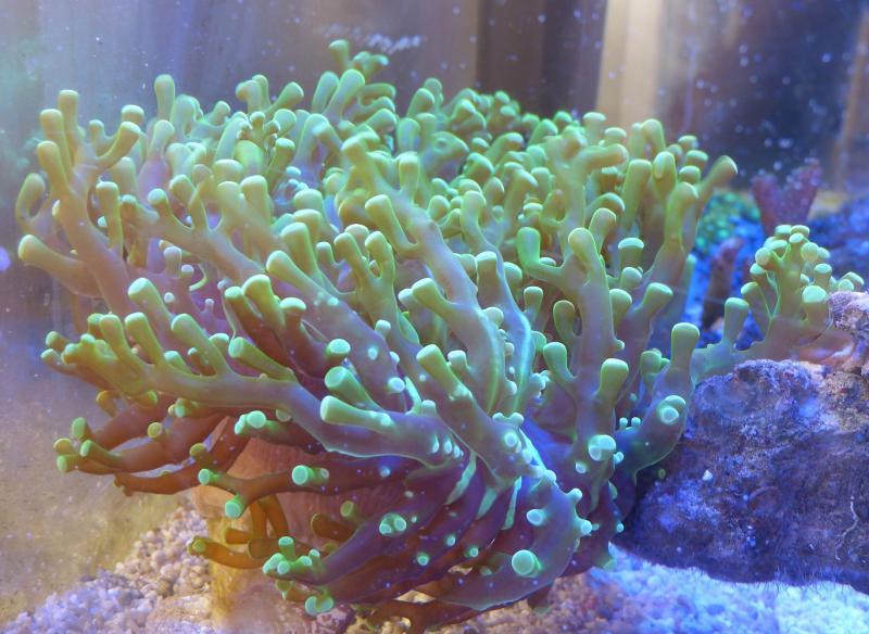 некоторые из кончиков полипов перестали флуоресцировать