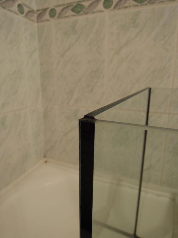 Качество изделия проверял дома: углы прямые, размерам соответствует, наружный торец стекла шлифованный (или это такое "качество" полировки); боковые стенки выше фронтальных на 1,5 мм (может так надо); внутренние швы ровные, но со стороны дна кое-где силиконовые сопли и пробелы (похоже сильно спешили).