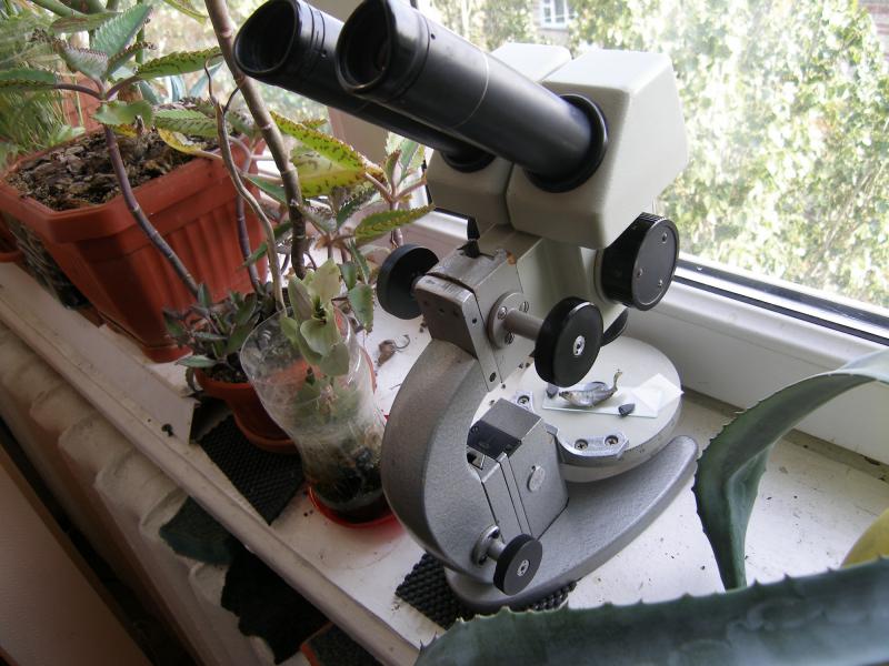Я её даже успел выкинуть, но потом достал из ведра и решил обратить её кончину "на пользу дела"  . А именно, положил под микроскоп и сделал несколько фото в соответствии с примерами из статьи Г.В. Самохваловой.