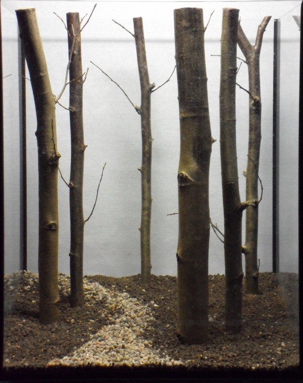 ваще в мировой практике такие тонкие стволы просто втыкают в грунт иногда фиксируя камнями,учитывая количество стволов у вас тем более не стоит заморачиваться))вместо дороги как вареант можно использовать поросший мхом ствол упавшего дерева))