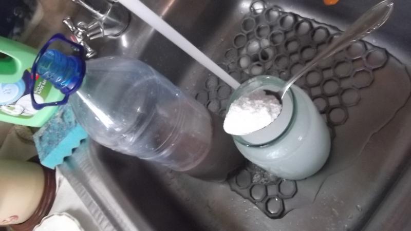воду слить и залить белизной 1:5(белизна можно больше до 10);