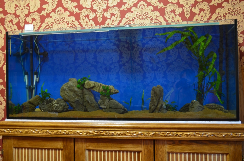 Сирго, Я как "ярый" любитель дизайна,сгруппировал бы камни в левой части аквариума в одну кучку а не по прямой(но красиво),также и в левой части (но там немножко их не хватает).Камни очень красивые,но чуть бы больше их для завершения общей композиции, учитывая что вы не собираетесь держать песчаников.Криптокарину заменил бы на Валиснерию а вот анубиасы хорошо смотрятся.Это всего лишь моё мнение а не руководство к действию.