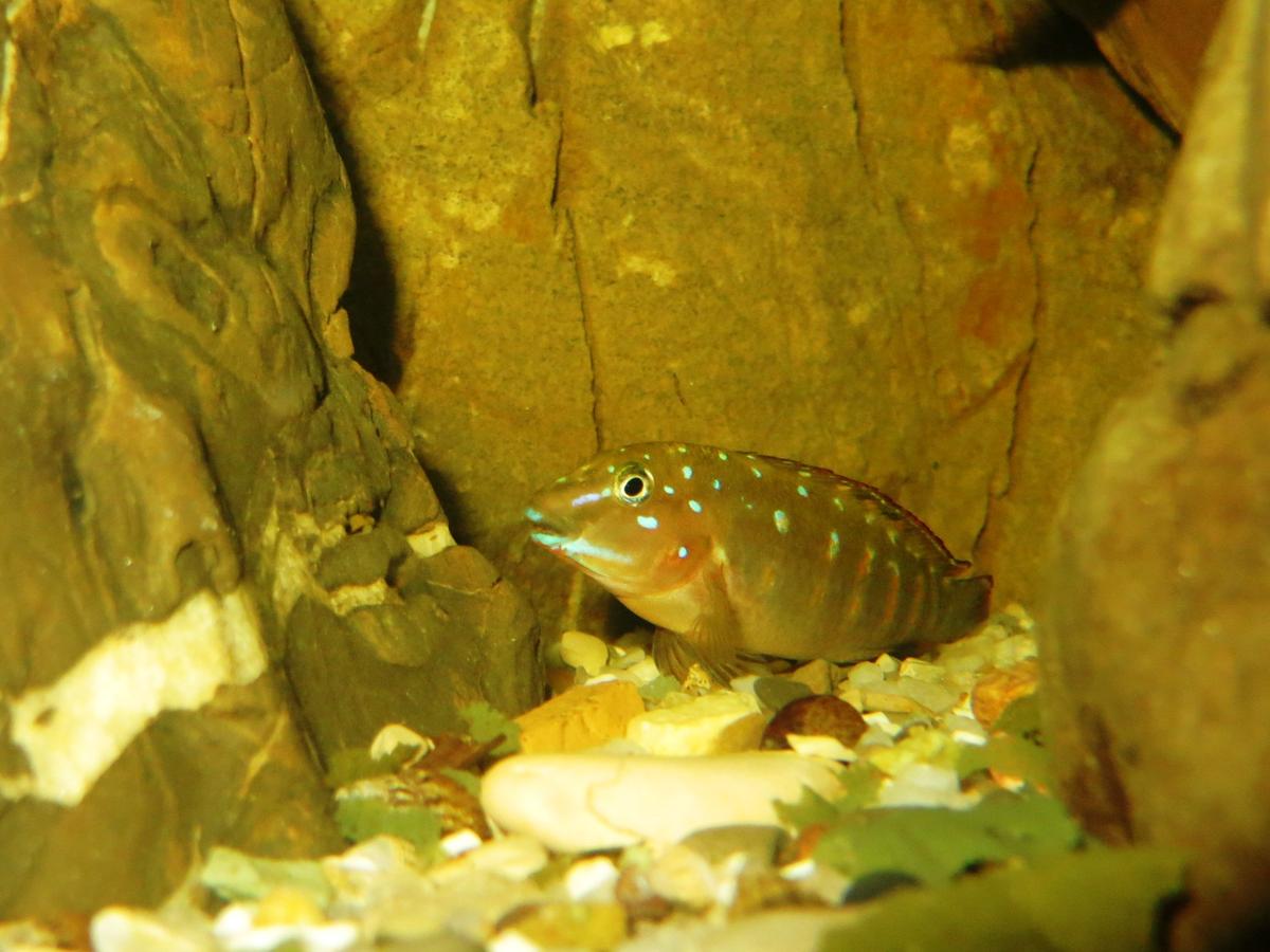 Поразительно, что, будучи еще очень маленькими, они делили территорию не хуже своих родителей совершая умопомрачительные (для мальков такого рамера 1-1,5см) рывки на расстояние 20-30см, в погоне за соперником. Мальки, как и родители, вытесняют конкурентов к поверхности, поэтому в аквариуме с Tanganicodus irsacae я советую разместить укрытия из керамических труб или гротов в непосредственной близости от самой поверхности. Таким образом, вы сможете избежать лишних жертв со стороны «рыб-изгоев».