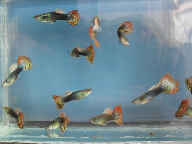 Толи мутация, толи гибриды- но самцов несколько появилось. Сильнейший перламутр корпуса и оригинальный окрас хвоста (желто-красный)