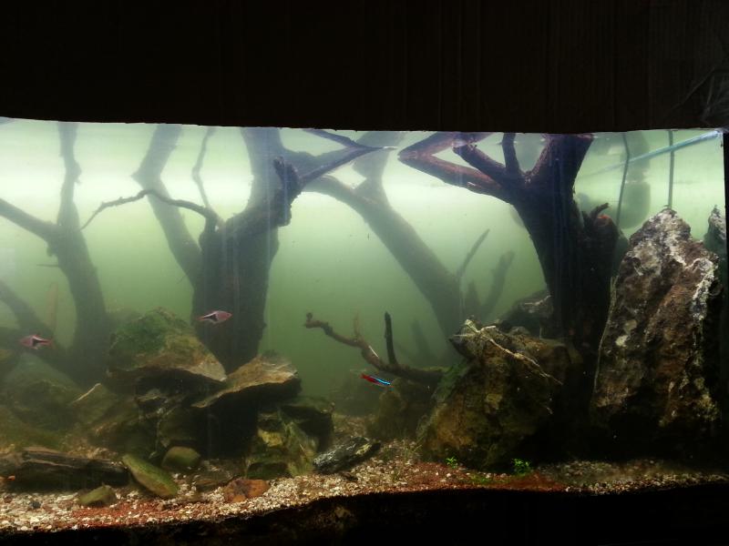 Начало создания нового скейпа.Правая часть аквариума не сделана вообще.Так что она не в счет.Левая чуток доработается и добавится то,что будет значимой частью скейпа.А также добавятся корни,торчащие из камней