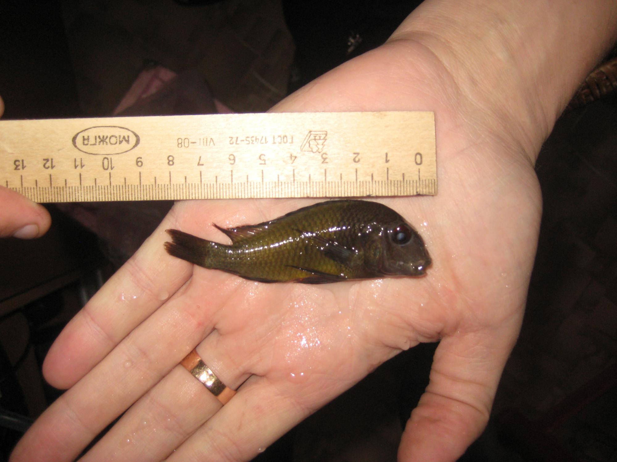 Как видите, человек ни разу не упоминает о качестве рыбы, его больше заботят другие вещи. Я обещал ему ответить на все его вопросы и кажется подробно это сделал. В завершении хочу сказать, что цель этого опуса не сказать, что вся рыба продаваемая вышеназваным продавцом плохая, отнюдь, как то брал у него мальков эретмодусов, претензий нет. Но в данной, конкретной сделке он повёл себя как АФЕРИСТ и НЕГОДЯЙ!!! О чём я и предупреждаю одноклубников и просто любителей Танги. Более красноречиво прокоментируют ситуацию, сделанные фото "супер трофов". На двух, на ладони для сравнения, лежат две рыбки одного возраста (мы не поленились и поймали мою самку), как говорится ощутите разницу.