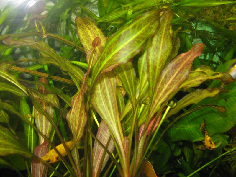 Эхинодорус «Танцующее Огненное перо»(Echinodorus «Tanzende Feuerfeder») Взрослое растение,молодой лист.