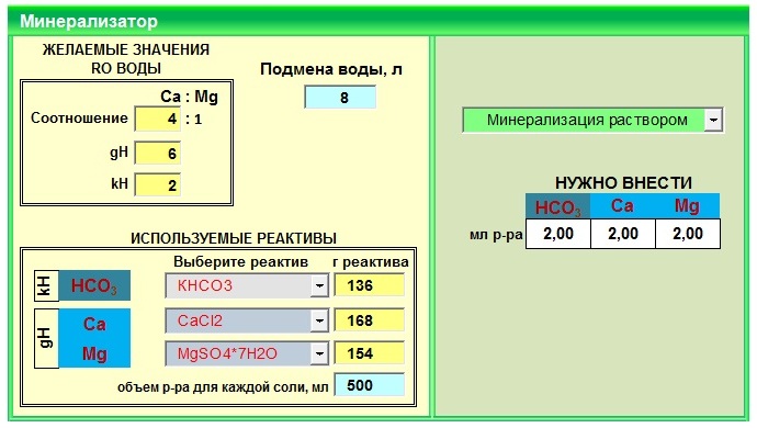 Правильно: по 2 мл каждого раствора на 8 л воды при подмене. Так?