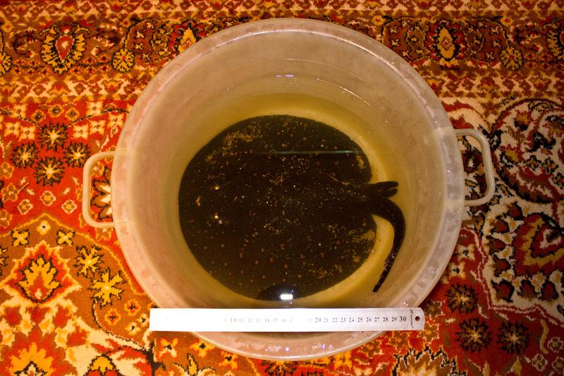 Парочка свежих фото обитателей. В прошлое воскресенье 09.02.2014 привёз из Днепропетровска самца мотора - 2 года, 30см в диаметре, уже успел подружиться с самкой. Назвал его Казимиром. А в минувшее воскресенье, 16.02.2014, встретил самку мотагу из Киева, которая на радостях сегодня отметала уже икру с самцом.