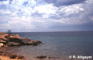 Скалистая литораль характеризуется обилием каменистых расщелин, нагромождениями камней, скоплением огромных валунов, в обилии покрытых водорослями.Обращает на себя внимание полное отсутствие высших растений.