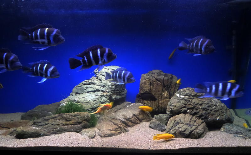 Все мы привыкли, что на дне озера в основном лежат разной формы и величины валуны. А что если внести то самое свежее течение в наш танганьикский биотоп, и оформить тоже дно другим камнем. Поверьте, рыбе ничуть не хуже, даже наоборот. В итоге получается действительно оригинальный, природный аквариум, комфортный для его обитателей.