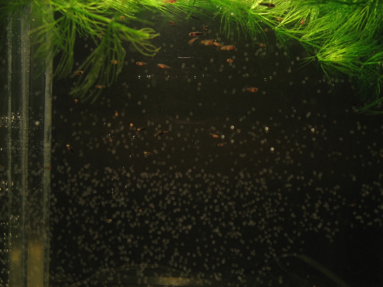 15.07.2014 - поместил в новый "старый" аквариум родившиеся сегодня в 08-00 утра меченосцев