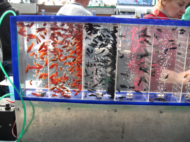Был сегодня на птичьем(?)-аквар. рынке.У!Видел явное оживление.Есть и оптовики и настоящие любители.Но фестиваль красок только начинается.Приведу несколько фото.Жаль,что сегодня приехал несколько поздно и может чего-то интересного уже не застал-разобрали.Об этом свидетельствуют пустые ячейки ширм у участников.Но из того, что видел и есть на фото.