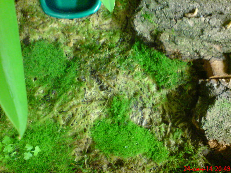 2. посмотрите в первом посте как она жила год в контейнере (жила абсолютно нормально) там так же как и в новом террариуме половину террариума закрывает кора и там сухо. у меня не очень влажно всего 70%