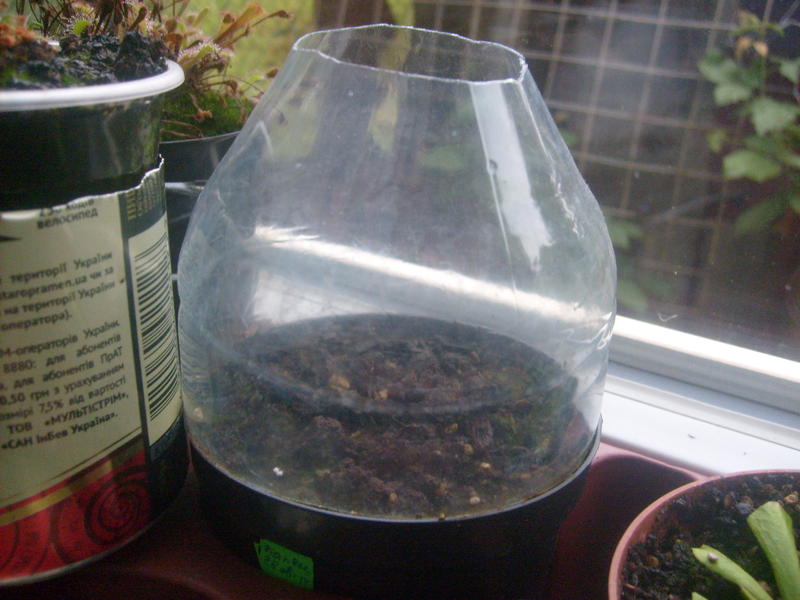 После того как Росянки подросту (через 1-2 месяца) верхний колпак можно снять полностью, а вторую часть бутылки поставить снизу в качестве поддона и поливать уже через него