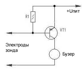 Добавлено: Вот навскидку нашел схему. Примерно так я ее и представлял, только без бузера (пищалки). Фольгированный облуженный (кстати да!) текстолит с канавкой, 10 кОм, КТ361. Но это на 9-12 вольт.
