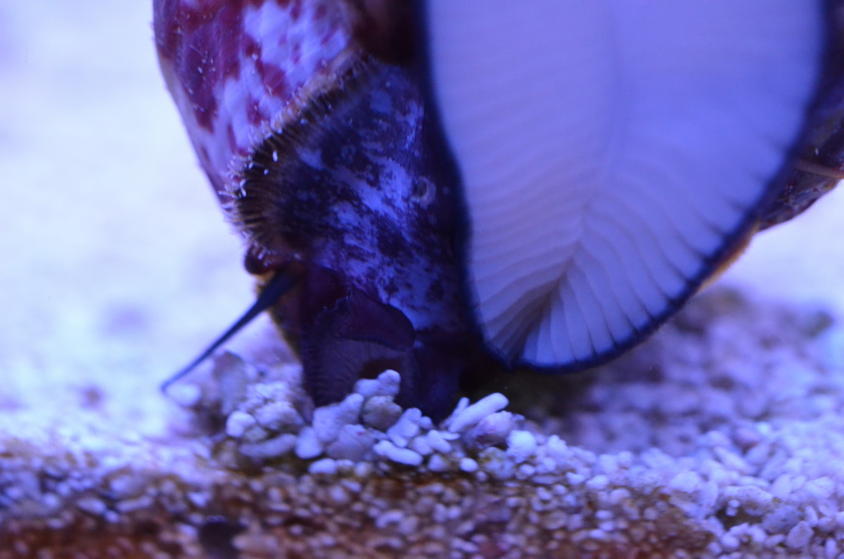 Могла быть кладка икры на коралле или плажке, они очень хорошо размножаются в аквариуме в отличии от стромбусов которые не размножаются в неволе....