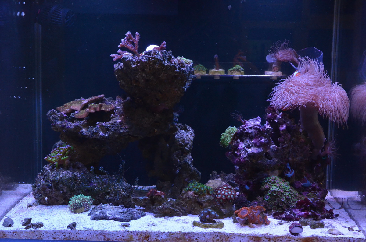 Течение: умеренное, помпа возврата 900 л/ч + коралия нано 900 л/ч, можно сказать что это очень слабое течение, но оно подходит большинству гидробионтов в этом аквариуме, поэтому пока так. В запасе имеется достаточно помп, но не вижу смысла их применять.
