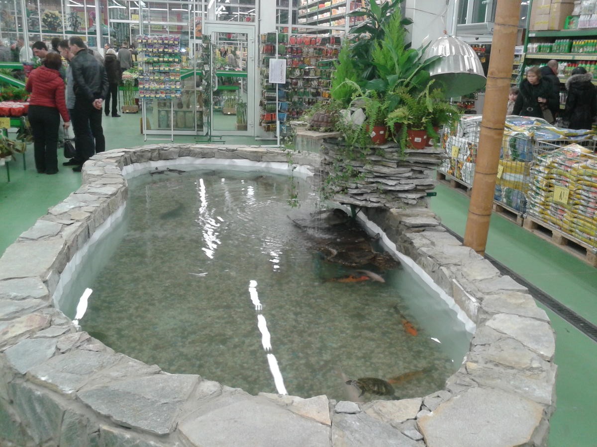 Давно хотел написать на форум,но как то все руки не доходили. И вот есть повод. В свое время пришлось работать в строительном маркете,в котором был пруд на кубов пять. С перепланировкой торговой територии,его надо было перенести на новое место(а проще построить заново). Так как теоретически я все знал,практических навыков у меня не было(вернее были неудачные,но дал слово себе больше не связыватся с каменно-земельными работами-больше люблю стекляные и теплые берега аквариумов  )) ). Поразмыслив о халявном опыте,с предоставлением всего строительного матеревлв и инструментов начал ваять  ))