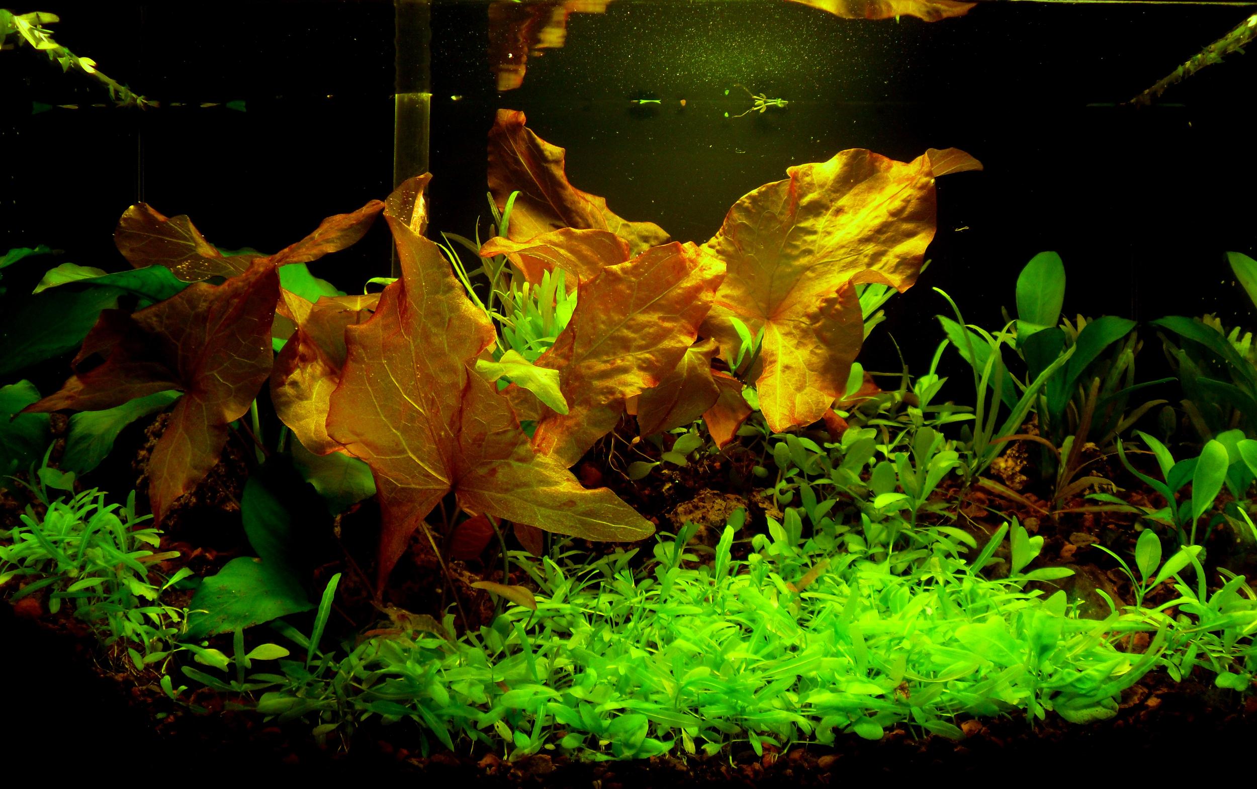 Нимфеи прут как на дрожжах, тут я немного сглупил и надо было их пихнуть в левый угол, за анубами, и трубку фильтра закрыли бы и думаю посимпатичней было б.