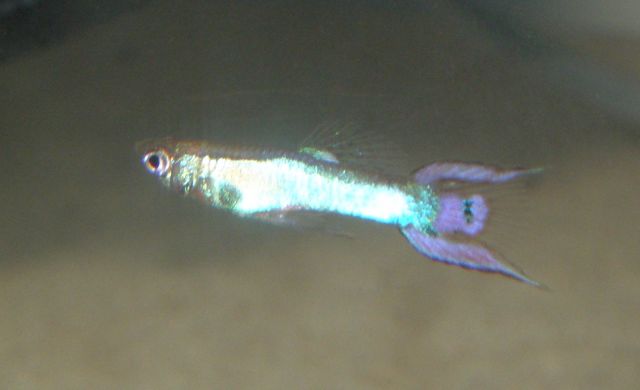 Подросли и окрасились самцы одного из пометов в довольно интересный вариант окраски - кроме оранжевого цвета в хвостовом плавнике, на хвостовом стебле есть перламутр и вместо обычного отсвета металлическим и бледно-желтым цветами, этот перламутр переливается желтым и оранжевым.