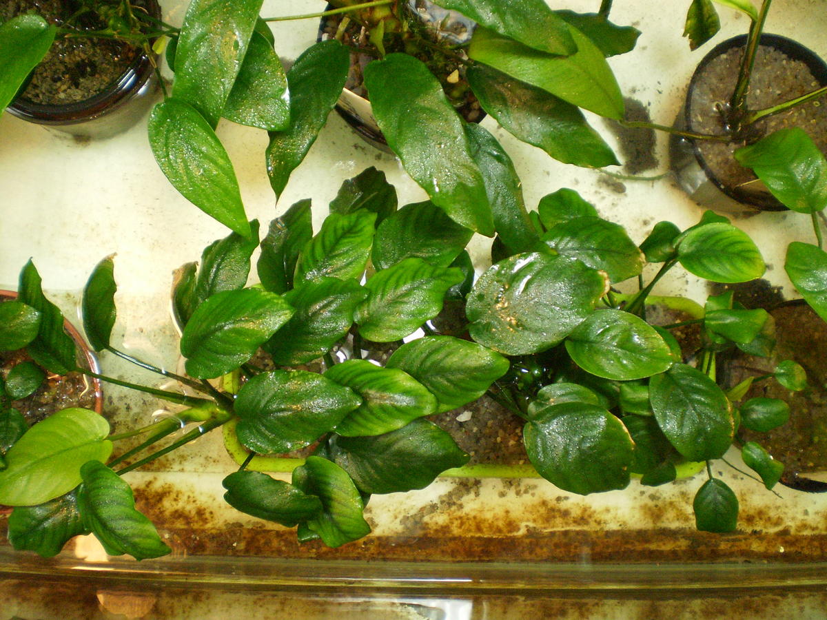 Про растения  :часть анубов перекочевала из №1 в №2,но т.к площадь дна немаленькая,пришлось из других банок повытаскивать большие кусты Наны и временно посадить.Ещё также были посажены криптокорины:Бласса,Розанервиг,Люценс,Понтидерия.: 002: