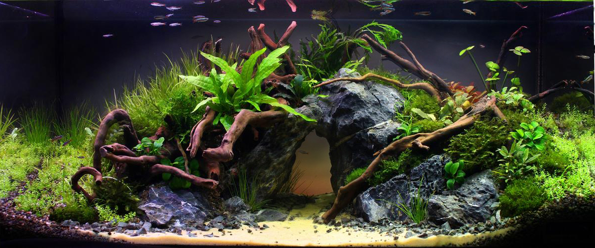 Володимир Романович, мне очень понравилось расположение коряг в Вашей работе! если интересно обыграть растениями то можно было бороться за призовое место. Щели между корягами и камнем (тот который под ними) надо было заполнять теми же анубами, на заднем плане использовать мелкую длинностебельку продолжая линию заданную корягами, на передний план не имея мелких камней можно добавить почвопокровки "островками". Концы коряг как и основание камней обязательно погрузить в грунт, крайний правый камень выпадает из общей картинки, крайний левый против шерсти стоит.