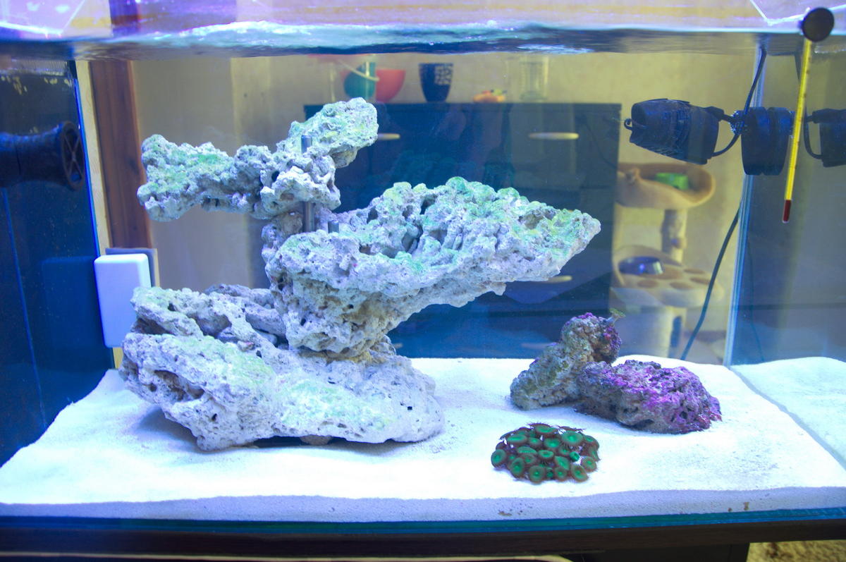 только я решилась на покупку первых кораллов, как в субботу у меня жутко помутнела вода (снова) и начали покрываться зеленым налетом камни и песок, по этому пришлось еще не на долго отложить свою хотелку  )