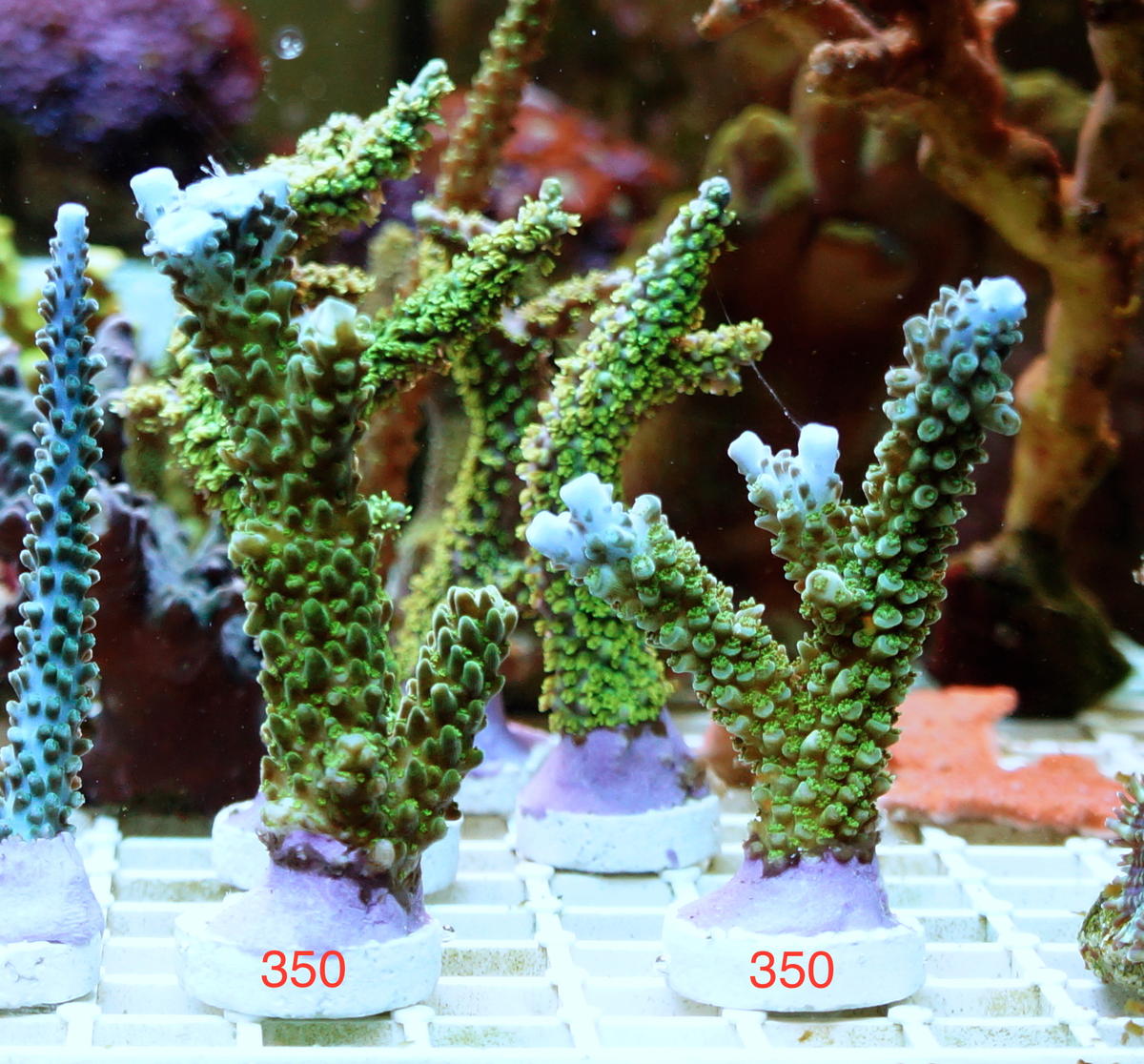 Татьяна, пожалуйста, в бронь: 1. Корнулярия-160; 2.зеленые рога з голубыми точками-240;3. Зеленые ядовитые-240; 4.сериатипора неоновая-150; 5. Монтипора красная листовая-200; 6. Сериатипора сиреневая-250; 7. Акропора сине зеленая -350; 8. Поцилопора малиновая-150; 9. Малиновая милли-180; сорри за неудобный текст-пишу с телефона)