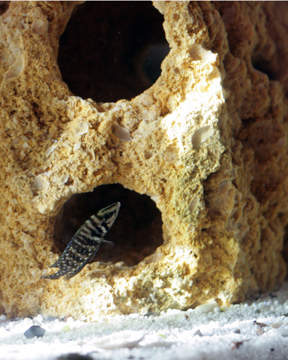 Гість із файного міста Тернопіль - Altolamprologus calvus black fin "black pectoral" вибирає собі двоповерховий маєток